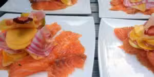 De zalm doe ik het liefst op een lage temperatuur garen, tot een kerntemperatuur van 45 graden, zo is hij mooi rosé aan de binnenkant. Vervolgens stook ik de BBQ op naar 120 graden met de appel rooksnippers in de houtskool en het hitteschild erin. Probeer de BBQ op een temperatuur van 100 graden te houden en dan 30-40 minuten langzaam laten roken.