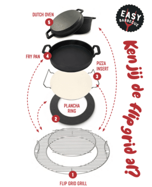Het Flip Grid-systeem is speciaal ontworpen voor de Grill Guru kamado barbecue en maakt optimaal gebruik van de unieke eigenschappen van deze barbecue.