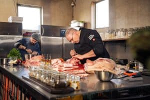 Altijd al eens willen zien wat er allemaal schuilgaat achter een mooi stuk vlees? Wij snappen die nieuwsgierigheid maar al te goed! Tijdens deze bijzondere workshop nemen onze chefs je mee op een smaakvolle ontdekkingstocht van kop tot staart. We starten met een demonstratie waarin een half varken vakkundig wordt uitgebeend. Je ziet stap voor stap waar de verschillende delen vandaan komen en wat je er allemaal mee kunt maken. Geen droge les, maar een inspirerend kijkje in het echte vakmanschap.