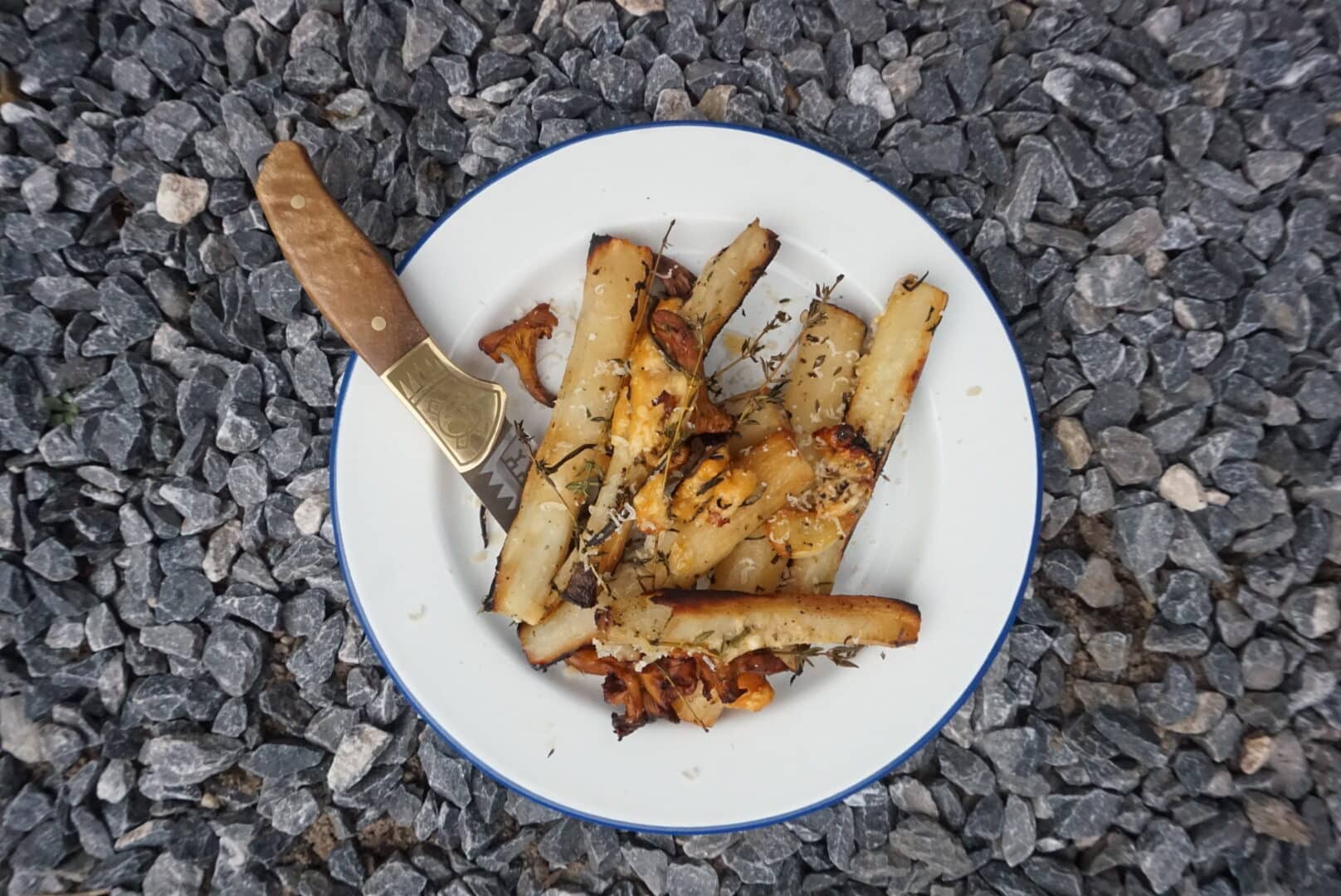 Armeluis-asperges met cantharelle in gietijzer