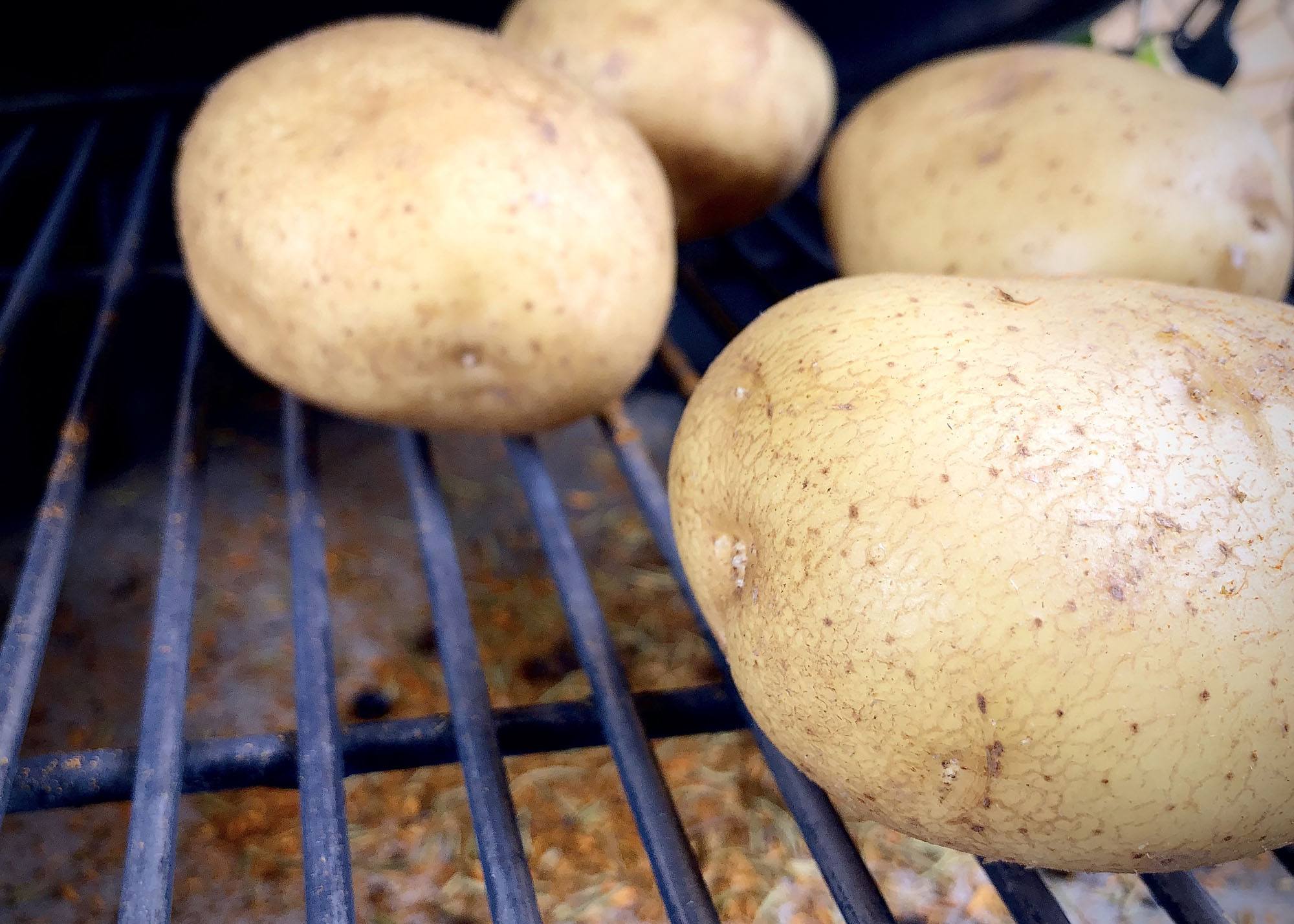 Leg de aardappels op de indirecte zone en laat ze ongeveer 45 minuten tot een uur garen. Controleer met een vork of de aardappels gaar zijn.