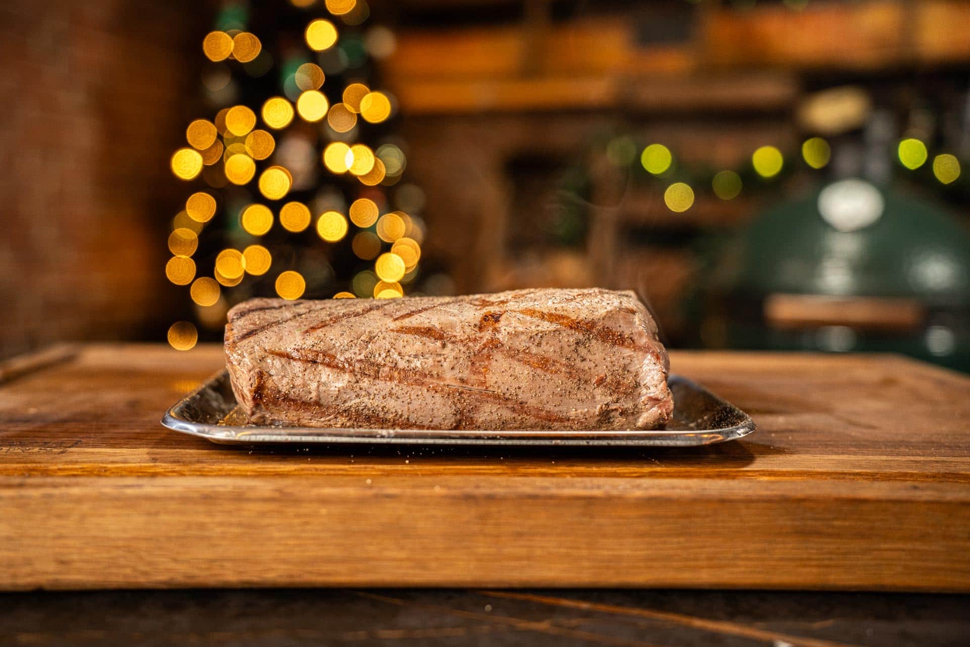 Een dag later haal je de ossenhaas uit de koelkast. Daarna steek je de BBQ aan en verwarm je die tot een temperatuur van 250 graden. Vervolgens bestrijk je de ossenhaas met een dun laagje olijfolie. Wanneer de BBQ op temperatuur is, leg je de ossenhaas direct in je BBQ. Houd de dome dicht, zodat je de BBQ-smaak aan je ossenhaas krijgt. Je grilt het vlees kort rondom bruin, zodat er een mooie grilruit op komt te staan. Vervolgens haal je de ossenhaas uit de BBQ en je doet hier nog lekker wat peper overheen. Daarna zet je hem weer terug in de koelkast, totdat hij volledig is afgekoeld.