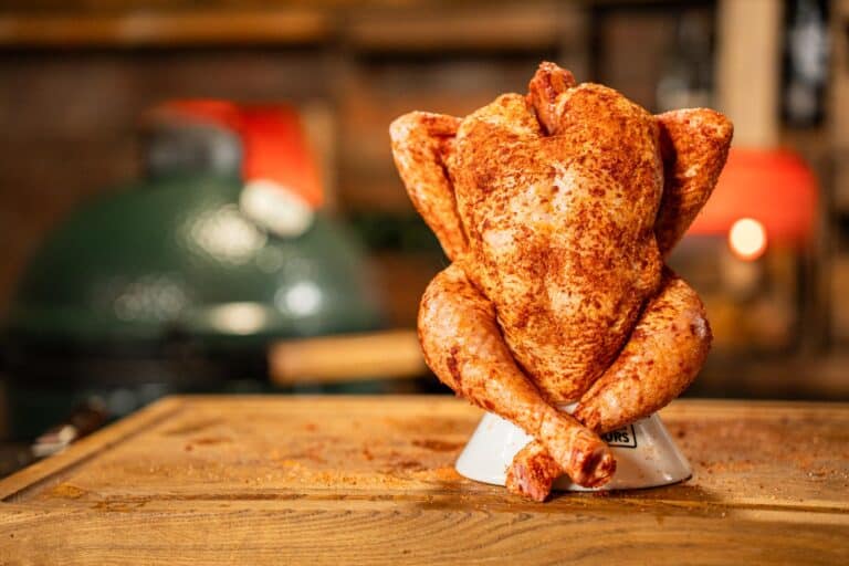Je hebt een plate setter (hitteschild), keramische kiphouder, thermapen en een druippan nodig.