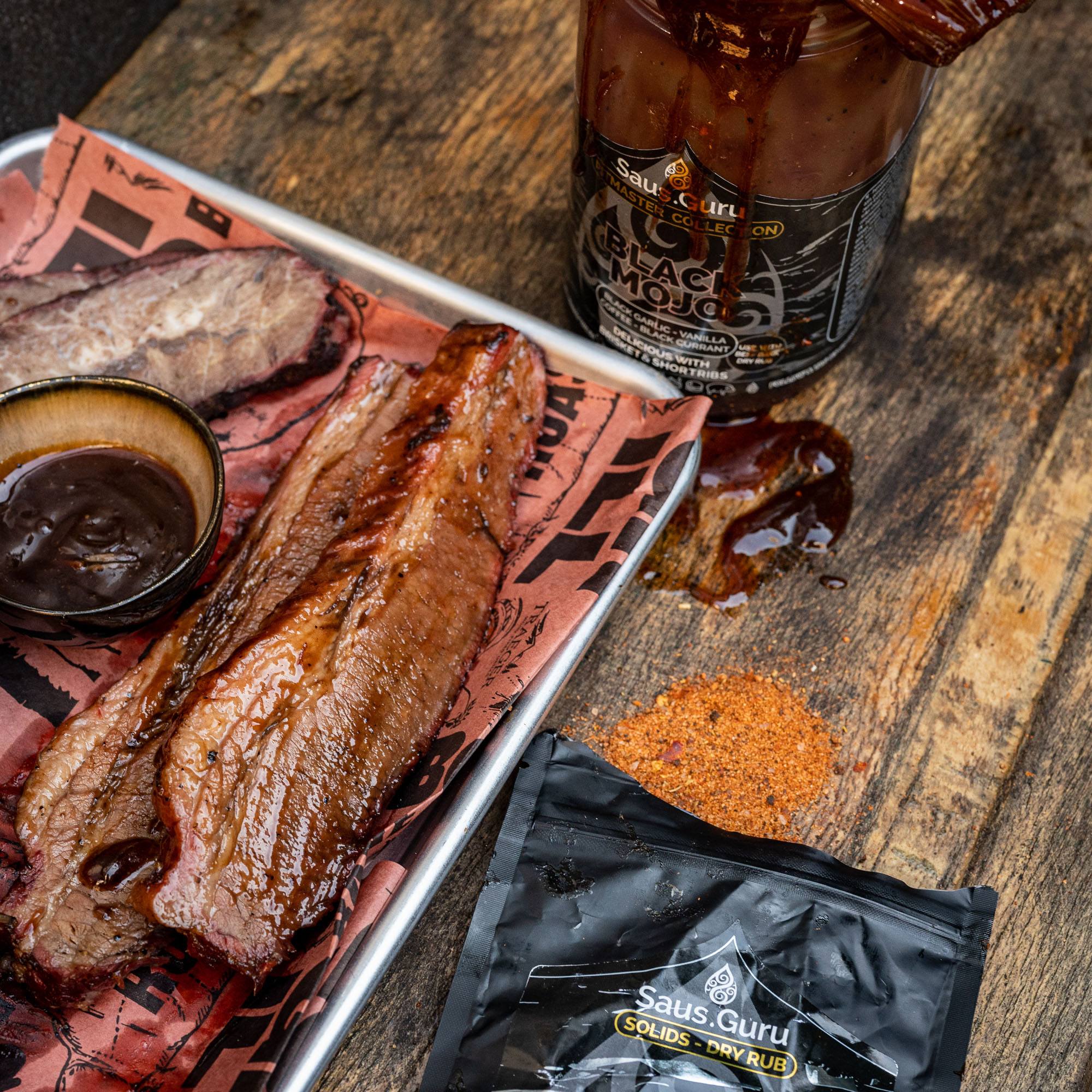 Een brisket maken kan op verschillende manieren maar je hebt altijd de tijd nodig om het botermals te maken. De injectie methode en het inpakken helpen het je gemakkelijk te maken. Dit recept is speciaal door Saus.Guru voor BBQ Experience Center ontwikkeld met de nieuwe pitmaster rubs en sauzen. Ze zijn niet volledig in detail uitgewerkt om wat creativiteit voor jou als chef over te laten, vandaar het niveau gemiddeld.