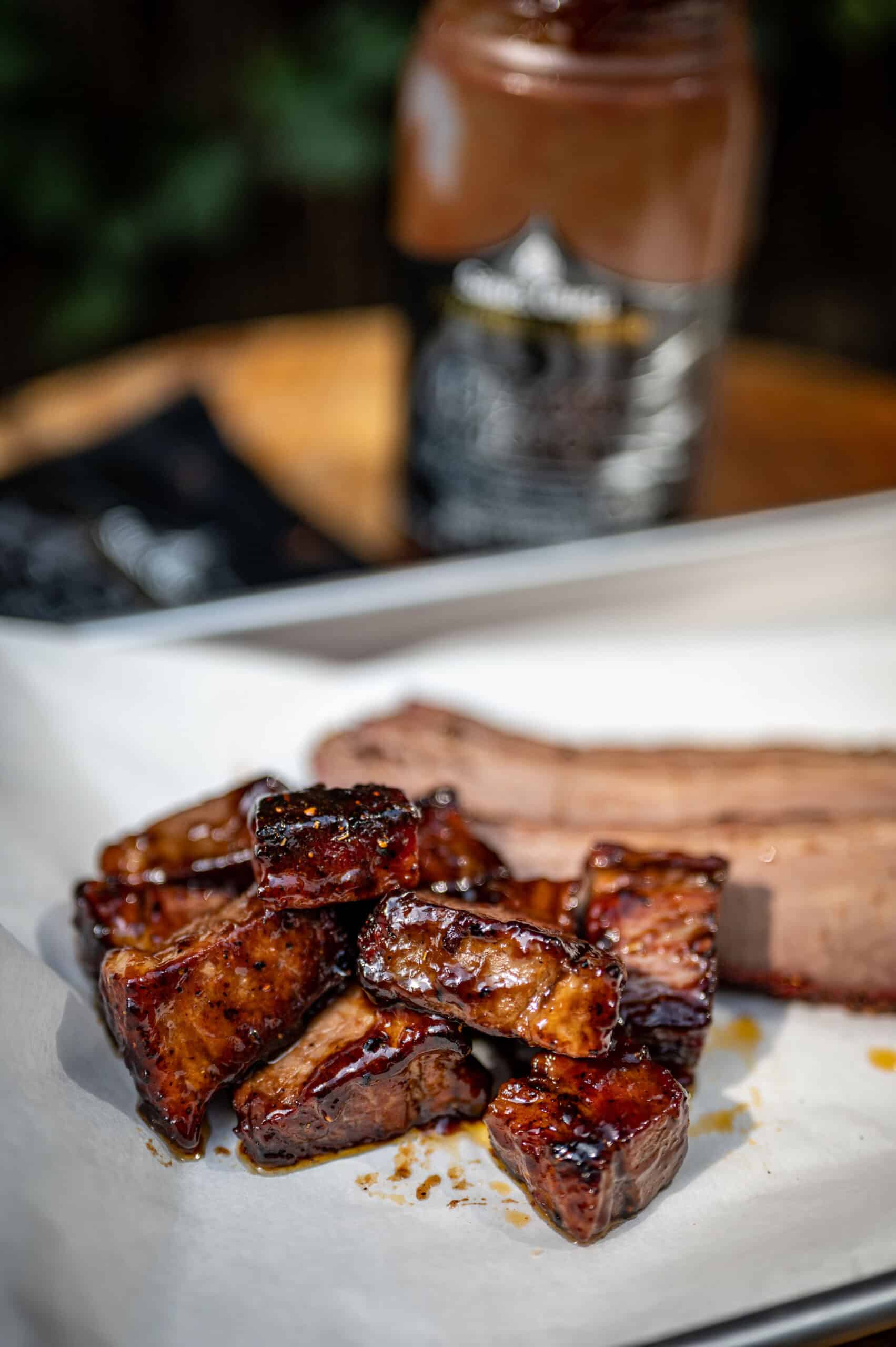 Besmeer de brisket dun met Black mojo (puur om de Rub te laten plakken). Besprenkel de brisket ruim met Beef Bark rub.