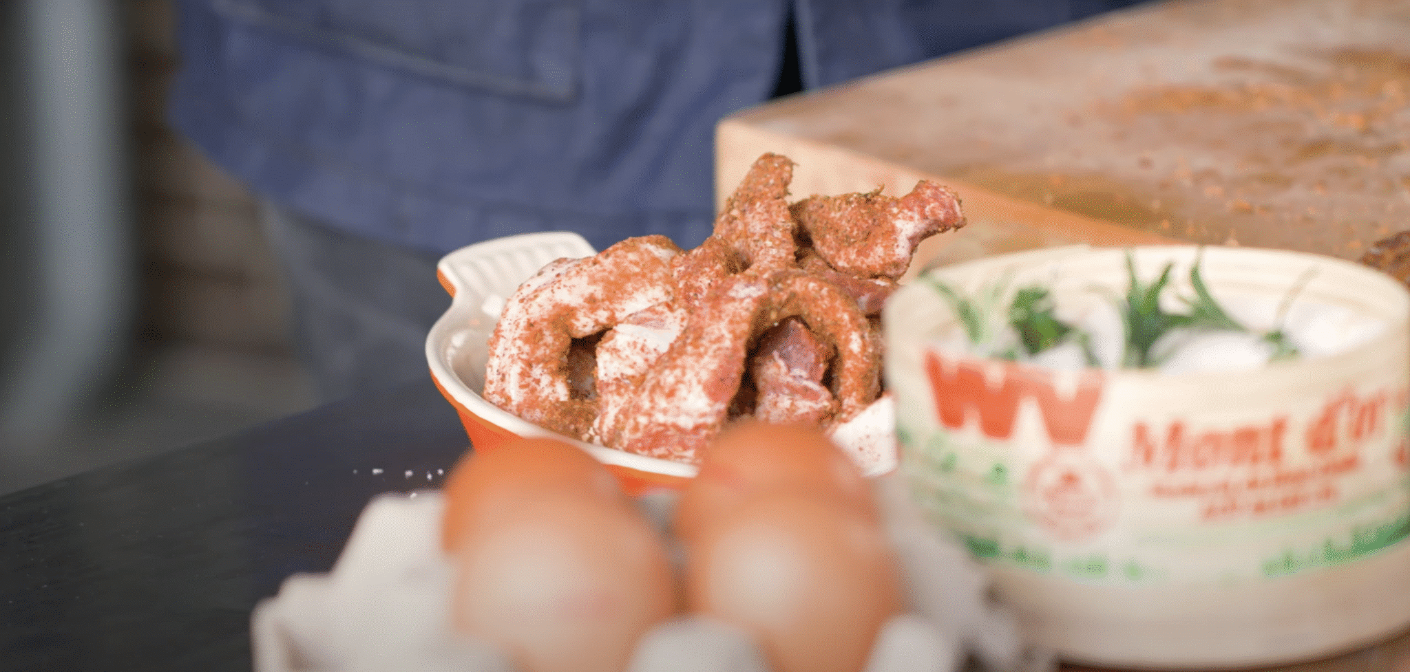 Voor de Iberico ribfingers heb je 6 Iberico ribfingers nodig, Angus & Oink Bengali Curry Powder, en BBQ Experience Center original BBQ saus. Voor de chicken wings heb je 6 chicken wings en Angus & Oink Hot & Hostile rub nodig. Voor de Italiaanse gehaktballetjes heb je rundergehakt (500 gram), 1 ei, 3 eetlepels Panko en olie om in te bakken nodig. Voor de Vacherin Mont D’or heb je een Vacherin Mont D’or, 1 takje rozemarijn, 1 takje citroen tijm, en notenbrood nodig.