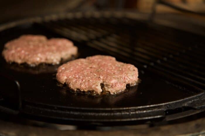De garnituren zijn gesneden, de saus staat klaar en de burgers zijn gekneed. Tijd om de burgers te bakken.