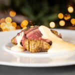 Hoofdgerecht: Runder Presa met gegaarde paddenstoelen, Hasselback aardappelen en gerookte bearnaisesaus