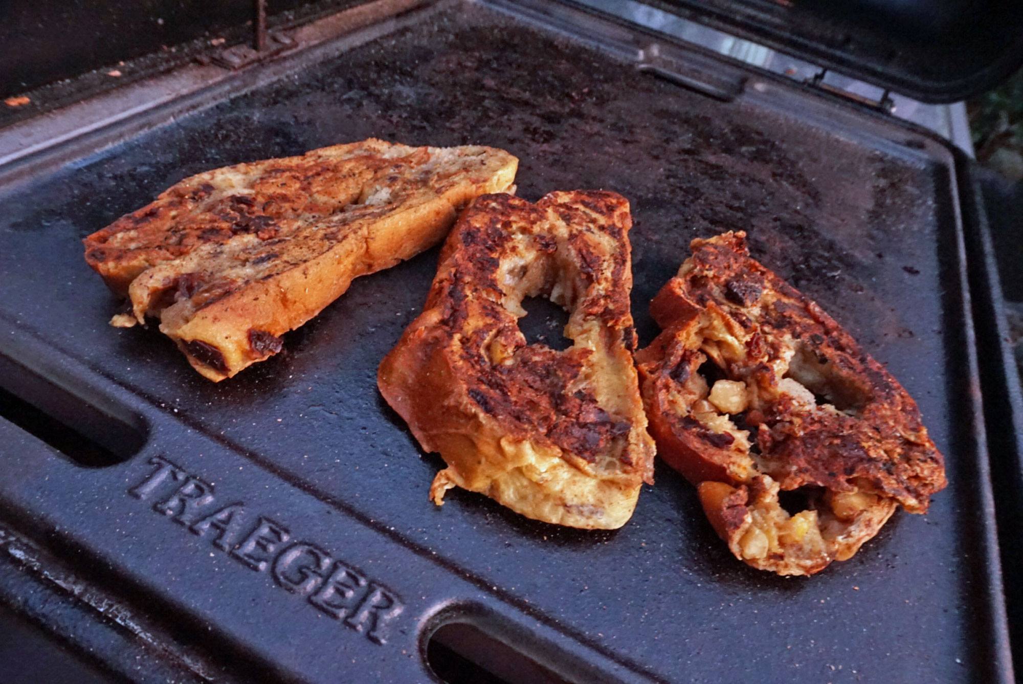 Stook de barbecue op naar 225 graden en smeer wat olijfolie op de plancha. Bak de broden nu rondom aan.