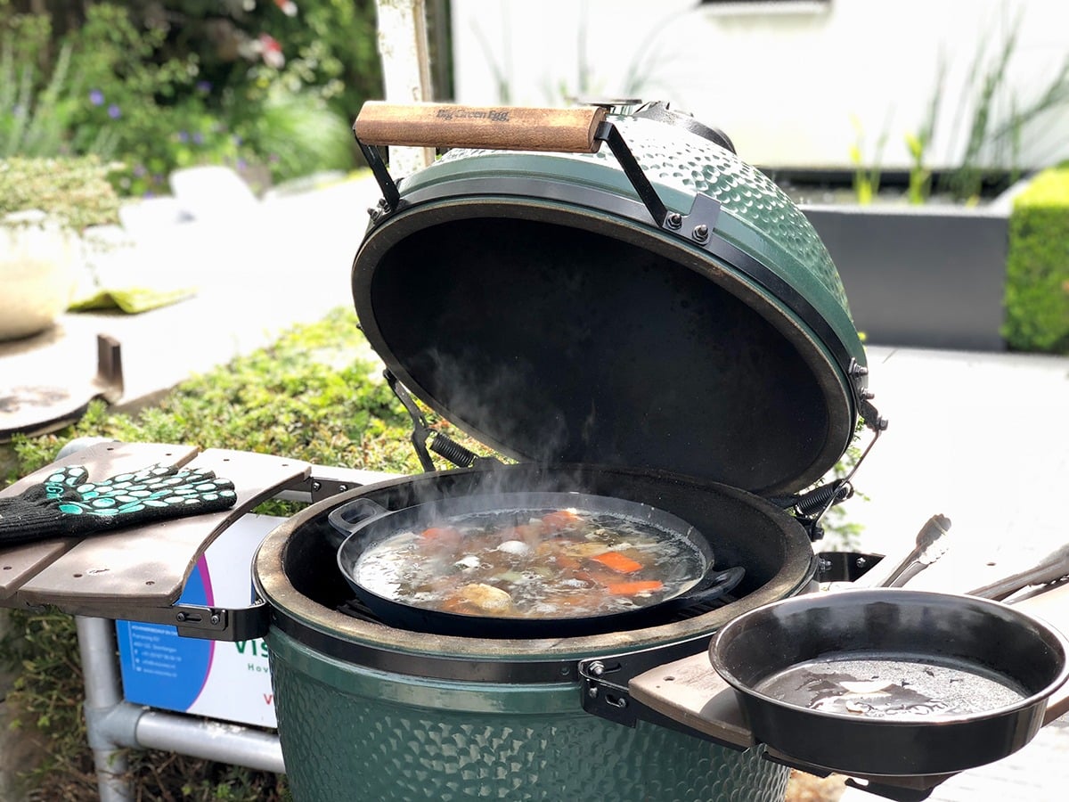 Voor het bereiden van dit recept heeft u de volgende benodigdheden nodig: Plate setter (hitteschild), Olijfhout rooksnippers, Dutch Oven, RVS tang, Zester.