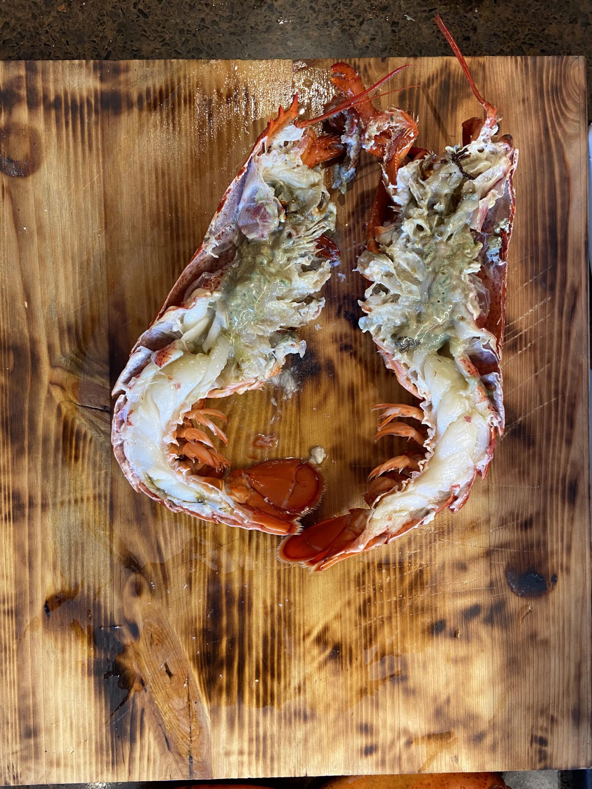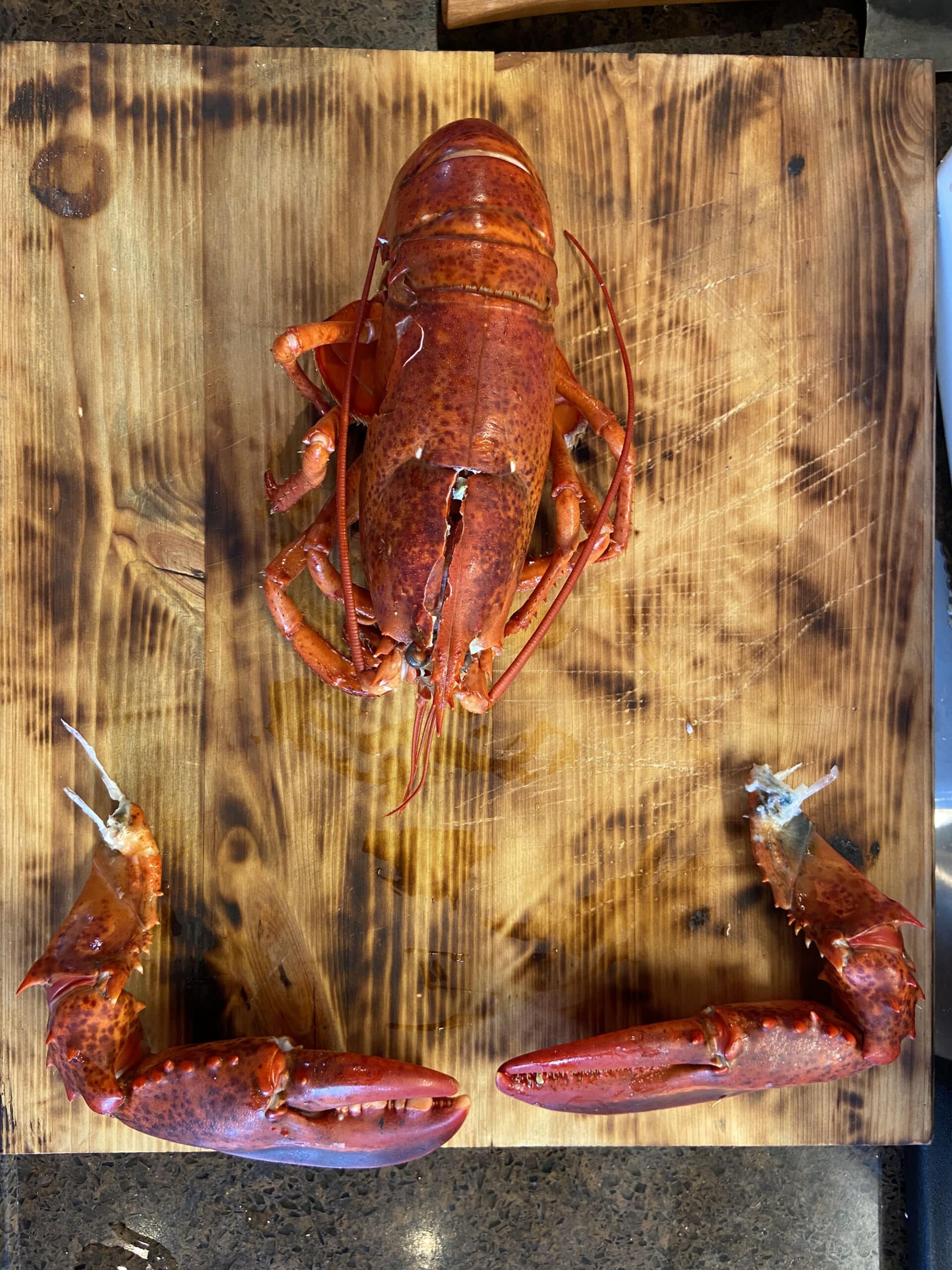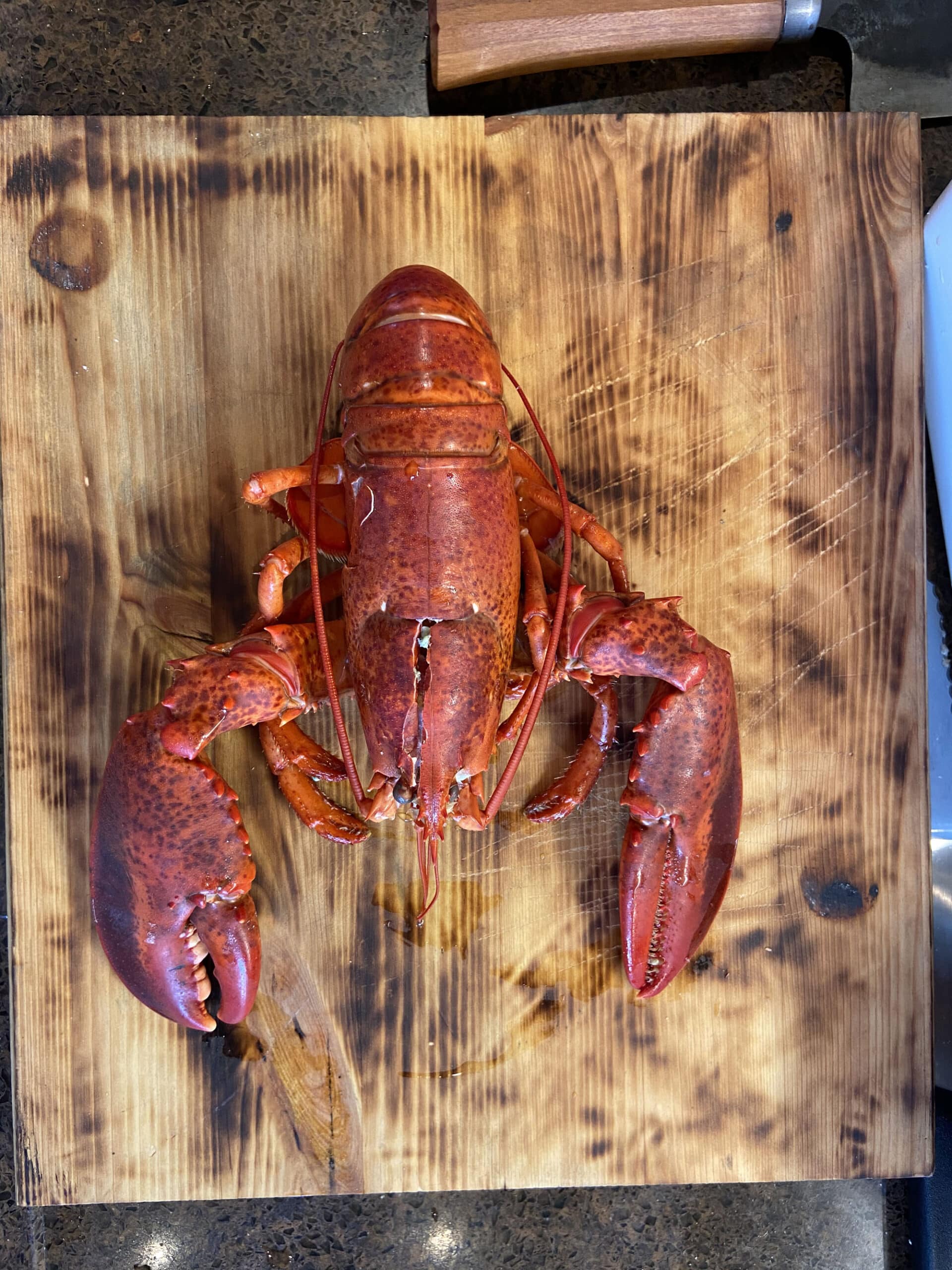 Leg nu de kreeft op de snijplank