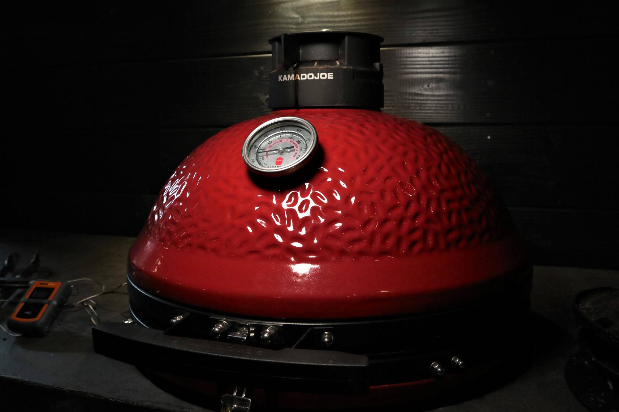 Na 1 uur roken, plaats je een nieuw blokje rookhout tussen de kolen. Vul het bakje water terug naar 2 cm, plaats het vlees op de gril en laat wederom een uur roken.