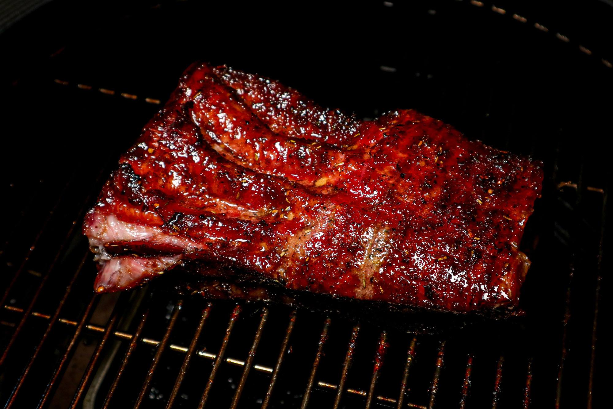 Na 2 uur roken is het tijd voor de laatste stap. Verwijder het bakje water en bestrijk het vlees rijkelijk met maple syrup. Sluit het deksel en laat de maple inbakken. Na 20 minuten open je de BBQ draai je het vlees om, en ook deze kant bestrijk je rijkelijk met maple syrup. Sluit het deksel wederom en herhaal deze stappen aan beide kanten nog 1 keer. Beide zijn nu 2 keer gemopt.