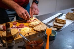 Sluit hierna de kamado en controleer na een paar minuten of de tosti’s gekeerd kunnen worden. Is de onderzijde goudbruin gekleurd met mooie grillstrepen, dan is dat het perfecte moment om ze te keren. Gebruik hiervoor een tang. Na ook de andere zijde mooi te hebben gegrild zijn ze klaar om te serveren.