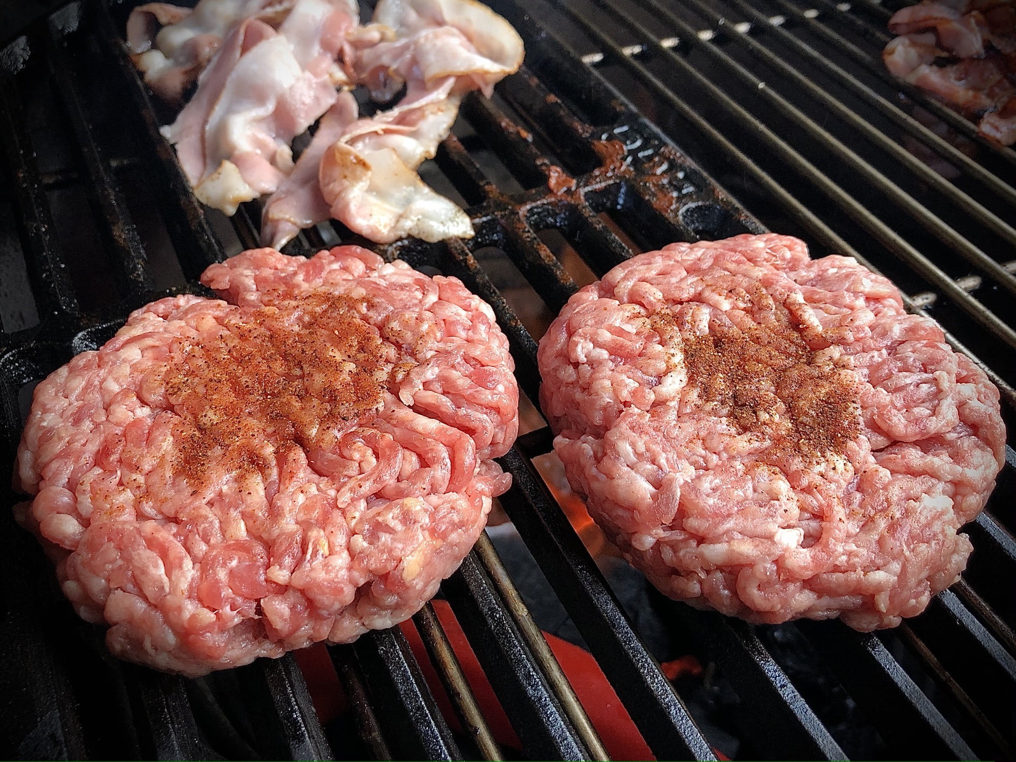Kruid je burgers met de Angus & Oink Porky White Chick rub. Als je gehakt gebruikt, vorm je hiervan 4 mooie burgers. Gebruik je kant-en-klare Iberico burgers, dan hoef je alleen wat rub op de boven en onderkant te strooien.