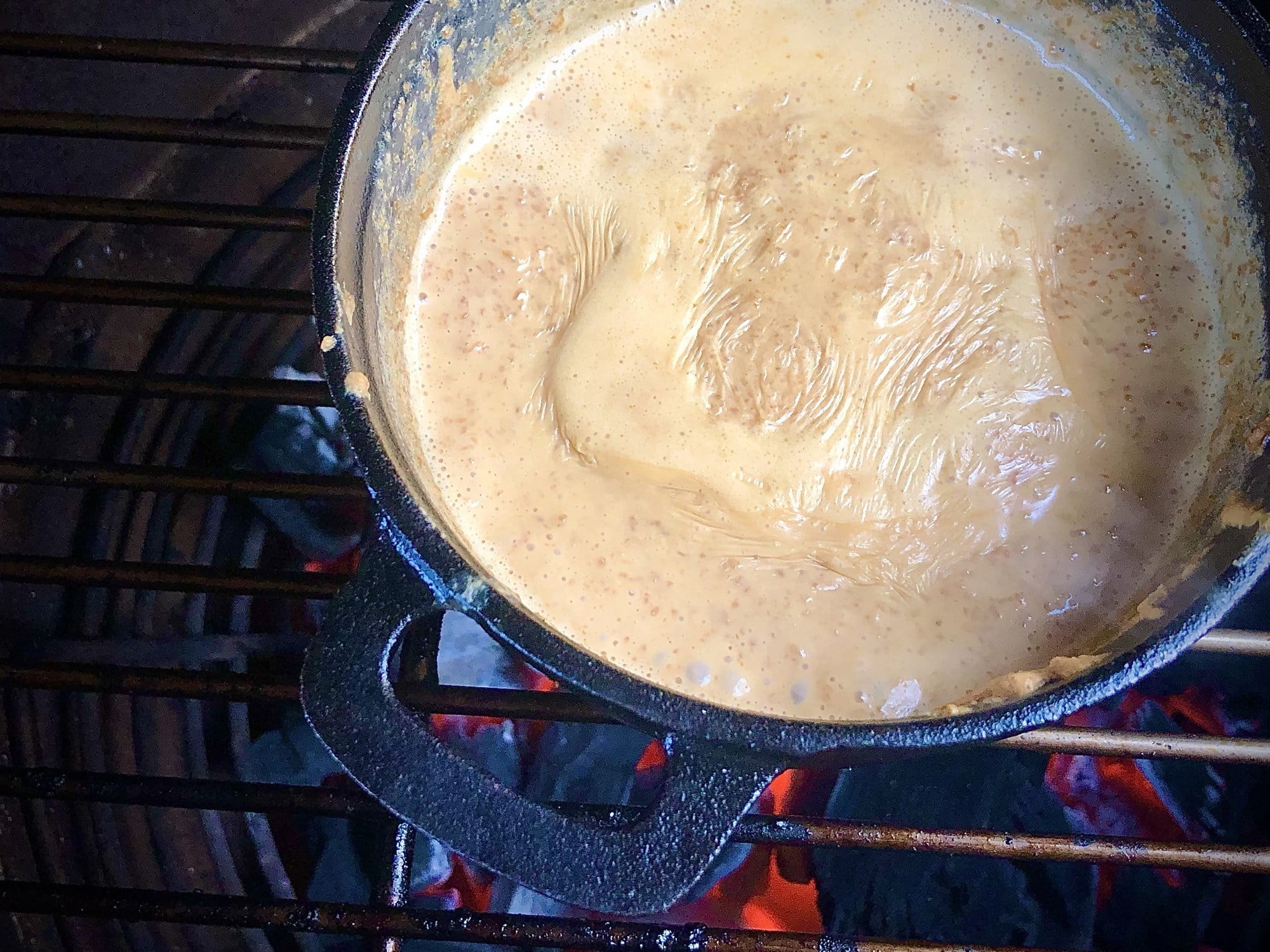 Doe de melk, room, ketjap, sambal, knoflookpoeder, gemberpoeder en als laatste de pindakaas in het sauspannetje. Roer goed door en zet op het rooster. Blijf regelmatig roeren.