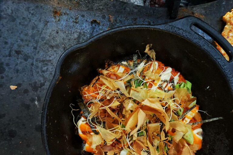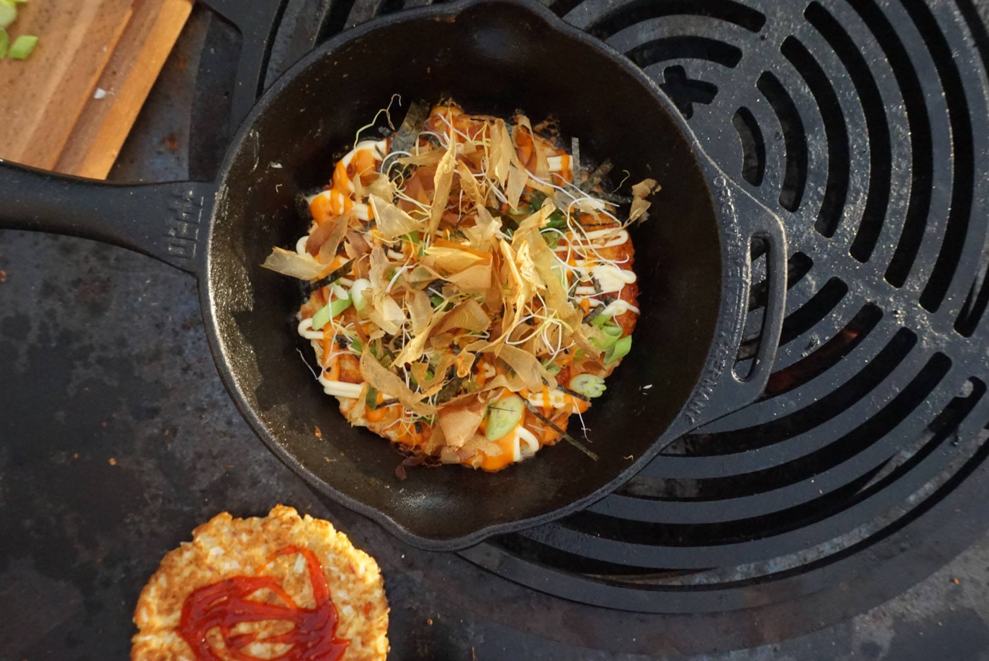 おーみ 焼 き, Okonomiyaki is een hartige pannenkoek uit japan.