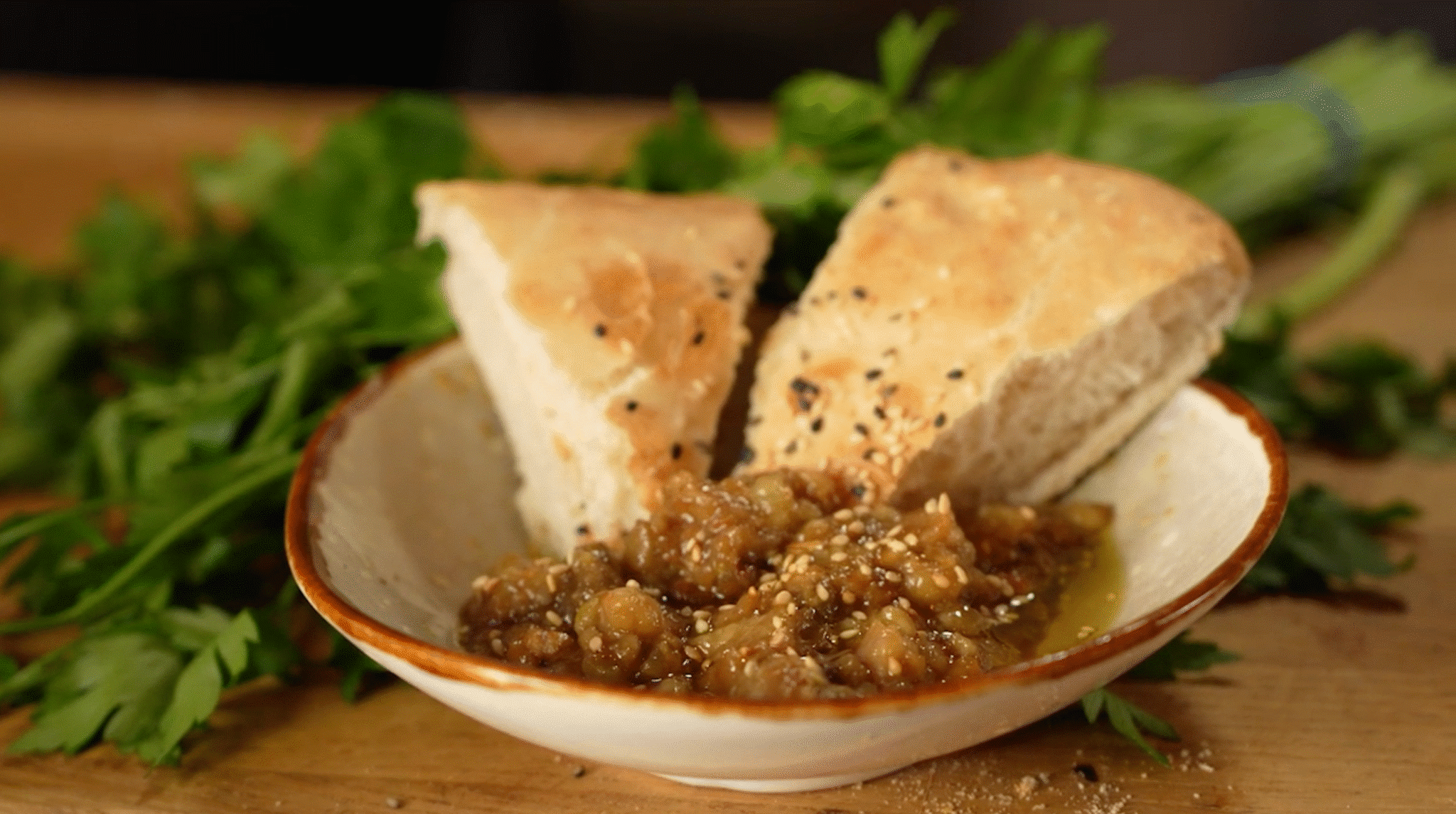 Je begint met het halveren van de aubergines. Vervolgens snij je het vlees kruislings in en plaats je deze in de braadschaal. Daarna meng je de 2 el miso, met de 1 el Tomasu, citroenrasp, ยฝ el mirin, 1,5 ketjappoeder en de 1 el gemberpoeder en roer dit tot een egale massa. Dan smeer je de aubergines hier royaal mee in. Tijd om de aubergines te roosteren tot deze volledig gaar en krokant zijn. Je smeert ze iedere 5 min in met de marinade, zodat deze mooi kunnen karameliseren op het snijvlakken van de aubergines. Zodra de aubergines volledig gaar zijn werk je ze af met wat sesamzaadjes voor een lekkere crunch. Tip van de chef: wanneer de aubergines erg zacht zijn geworden kan je er een lekker spread van maken voor op een broodje! Je lepelt de aubergine uit hakt deze fijn en voeg wat Tomasu en olijfolie toe.