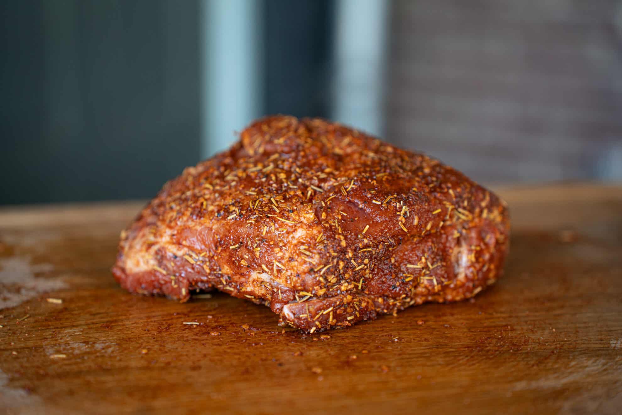 - Spuit hem voor het inpakken nog 1x goed in met de marinade spray en leg ook de plak roomboter erbij in het pakket. Gaar de procureur verder tot een kern van 92 graden.