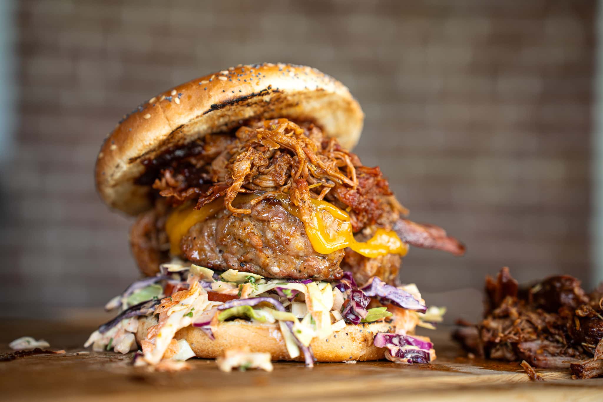 Een burger zoals je hem nog nooit hebt gezien! De Ultieme Pulled Pork Burger bestaat uit een heerlijke bun, hamburger van varkensgehakt, bacon, cheddar kaas, koolsalade en uiteraard een lekkere portie verse Pulled Pork! We maken dit recept op de kamado, maar je kunt het uiteraard prima ook op een ander type BBQ bereiden.