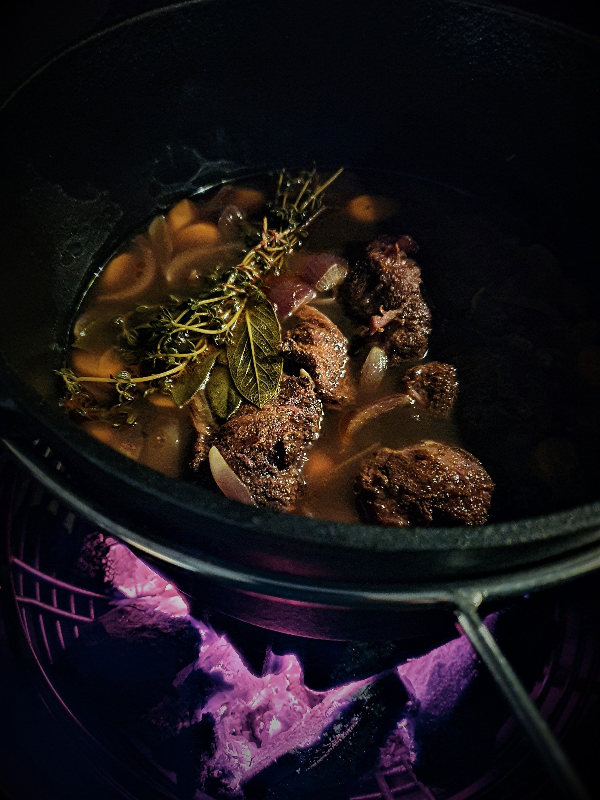 Zijn de wangen gerookt, bouw dan je BBQ om naar direct. Plaats als je een kamado hebt het rek in je kamado om de Dutch oven in te plaatsen. Heb je dat niet, geen probleem, zet dan je Dutch oven op het grillrooster.