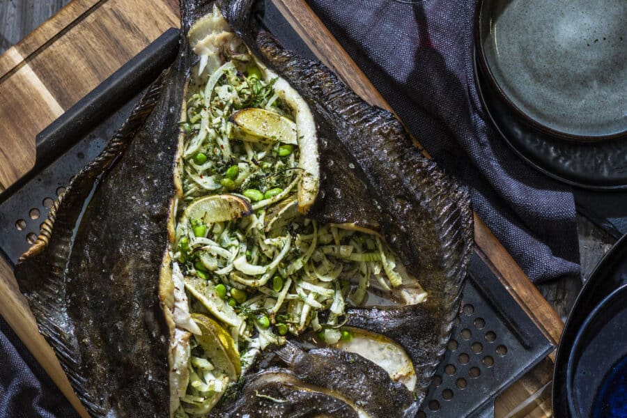 • Schol met gegrilde groenten