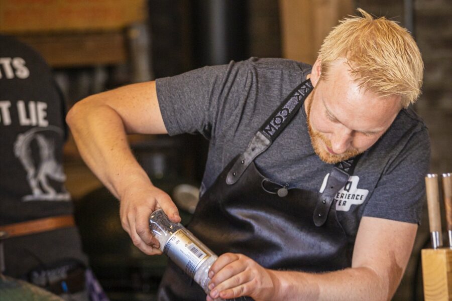 • Ingelegde zalm met wodka en rode biet van de zoutsteen