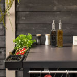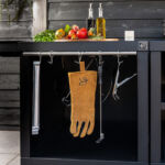 Maak je buitenkeuken compleet door bijvoorbeeld handige mise en place bakjes toe te voegen waar je ingredienten makkelijk in bewaard. Een haken set waar je je gereedschap aanhangt. Een deurtje is mooi om toe te voegen om een strak uiterlijk te behouden maar wel veel producten achter op te kunnen bergen. Warme accessoires leg je op een geintegreerd rooster (onder je BBQ bijvoorbeeld), en dankzij het geïntegreerde vilt leg je alles veilig neer zonder krassen.