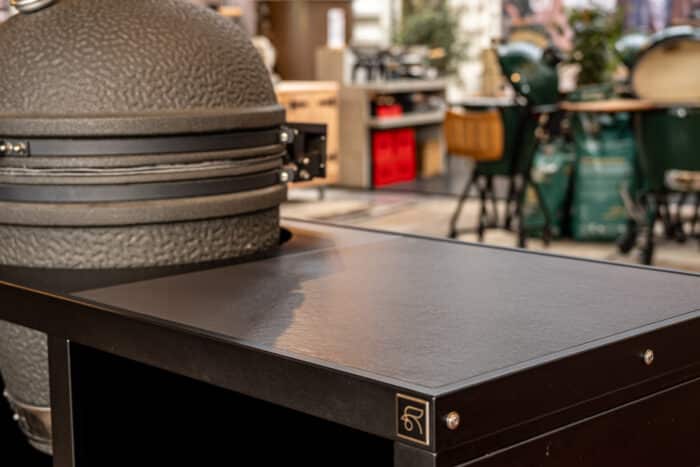 De Roostr Rubix basic Buitenkeuken is voorzien van een Dekton Sirius werkblad. Dit werkblad heeft een diep donkere zwarte kleur met een ruwe uitstraling en afwerking.