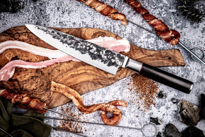 Het Sebra Forged Koksmes is een opvallende verschijning binnen het merk Forged. Het onderscheidt zich door het donkere hout dat gekozen is voor het vervaardigen van het heft, dat de naam Dalbergia melanoxylon draagt en afkomstig is uit Afrika. Deze serie heet dan ook Sebra Forged, naar de Afrikaanse vertaling van de houtsoort. Het donkerhouten heft straalt warmte en chique uit, wat, samen met het gehamerde lemmet en het subtiele rode detail bij de krop, deze serie echt bijzonder maakt.