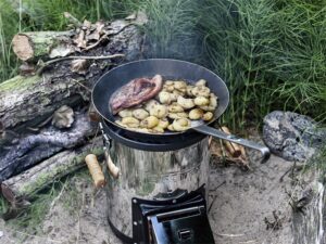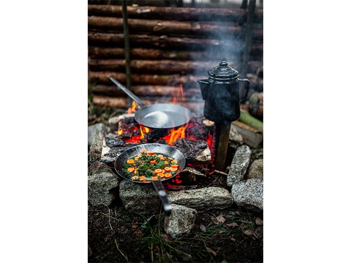 Met het gebruik wordt de pan en de buitenste laag van de Smeedijzeren koekenpan Petromax donkerder en steviger. Dit maakt de pan ideaal voor koken in de keuken of onderweg.