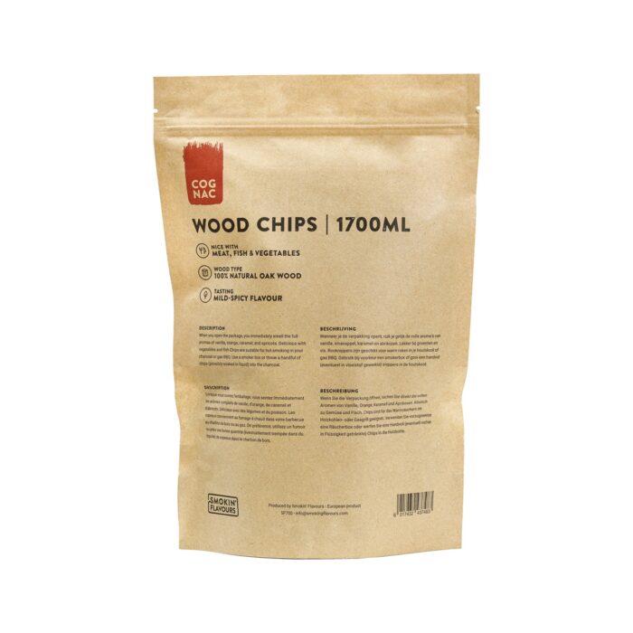 Wij adviseren om de Smokin’ Flavours Rooksnippers Cognac 1700ml voor gebruik even te laten weken in water. Dit zorgt voor een betere rookontwikkeling en een meer uitgesproken smaak.