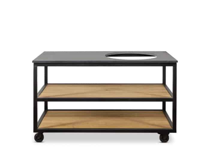 De Buitenkeuken Austin Stone is gemaakt van een zwarte stalen frame dat gepoedercoat is voor uitstekende bescherming tegen de elementen. De inleg is gemaakt van duurzaam Frakéhout uit Afrika.
