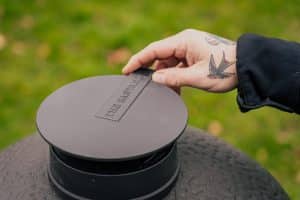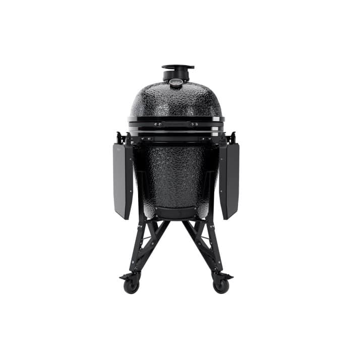 The Bastard Core Large compleet zwart heeft een vernieuwde topcap voor strakke luchtstroomcontrole, een verbeterd scharnier dat lichter opent, een snellere en nauwkeurigere dome thermometer, modulaire zijtafels waarvan je de binnenzijde eenvoudig uitneemt of vervangt door bijvoorbeeld een snijplank inlay, een onderhoudsvriendelijk handvat zonder hout, een vernieuwd onderstel met grotere wielen en een mat zwart luchtrooster. Dat maakt deze kamado bbq nauwkeurig, solide en heel gebruiksvriendelijk.