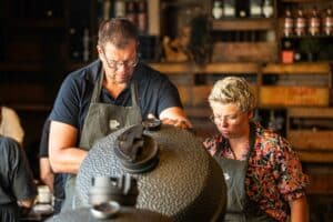 Per werkbank heb je de beschikking over een grote kamado waarin je zelf alles gaat bereiden, bij deze workshop werken we met The Bastard. Vaak gebruiken we extra BBQ’s in de workshopruimte om veel tegelijkertijd te doen. Heb je een ander merk of nog helemaal geen kamado? Geen probleem en je bent van harte welkom uiteraard! De technieken kan je zeker thuis ook toepassen.