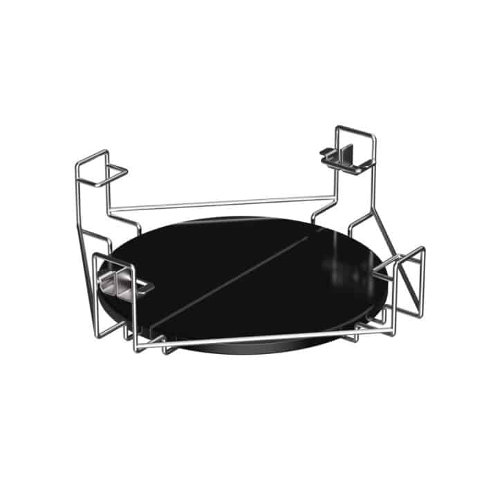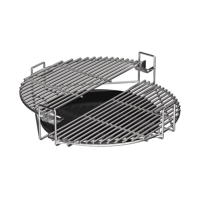 - Twee halve RVS roosters: speel met je temperatuur door je roosters in verschillende hoogtes op te stellen.