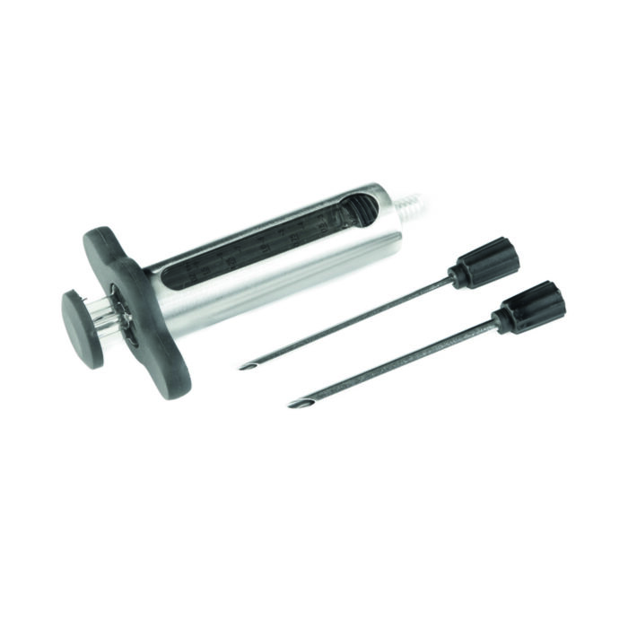 Bij The Bastard marinade injector rvs worden twee roestvrijstalen opzetstukken geleverd voor verschillende typen marinades. Zo kunt u altijd de gewenste hoeveelheid marinade in uw vlees injecteren.