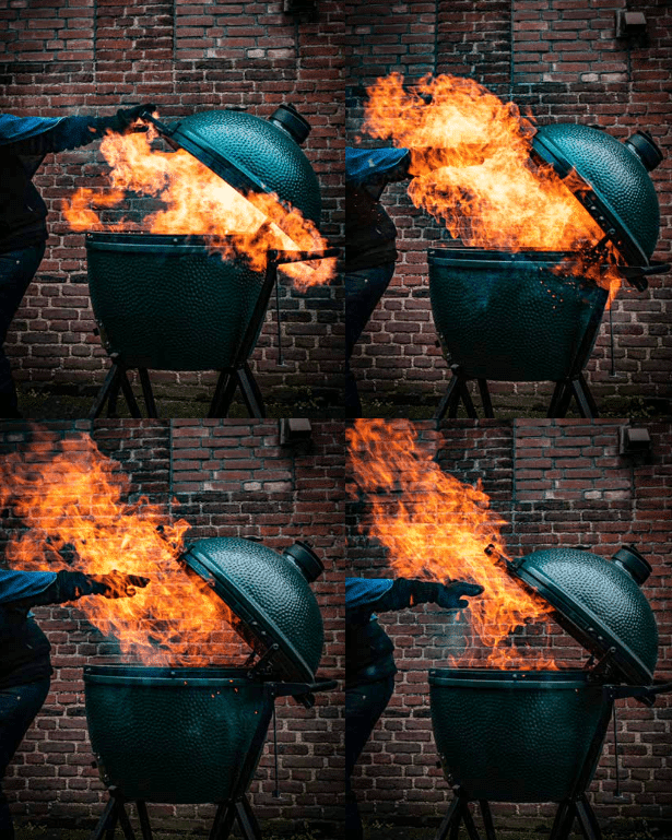 De laatste tip maar zeker niet de minste. Omdat je met weinig zuurstof werkt in de kamado kan er een onderdruk ontstaan in je kamado. Dit komt vooral door bij hogere temperaturen en terugkoelen in combinatie met vette producten. Wanneer je kamado 200 graden is, je bent hem aan het terugkoelen (dus zuurstof ontnemen) willen de kolen eigenlijk harder branden dan mogelijk is. In combinatie met een vet product dansen er veel vet deeltjes in de kamado rond. Wanneer je dan ineens veel zuurstof toevoegt door het deksel open te doen kan er een steekvlam ontstaan die je je (arm) haren ontneemt! Maak er hierom een automatisme van om de kamado altijd in 2x open te doen: eerst op een kiertje (lucht laten happen) en vervolgens helemaal open doen.