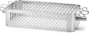 De Verstelbare RVS rotisseriemand Napoleon is perfect voor spareribs, roast en lamsracks, maar kan ook gebruikt worden voor grotere stukken groenten.