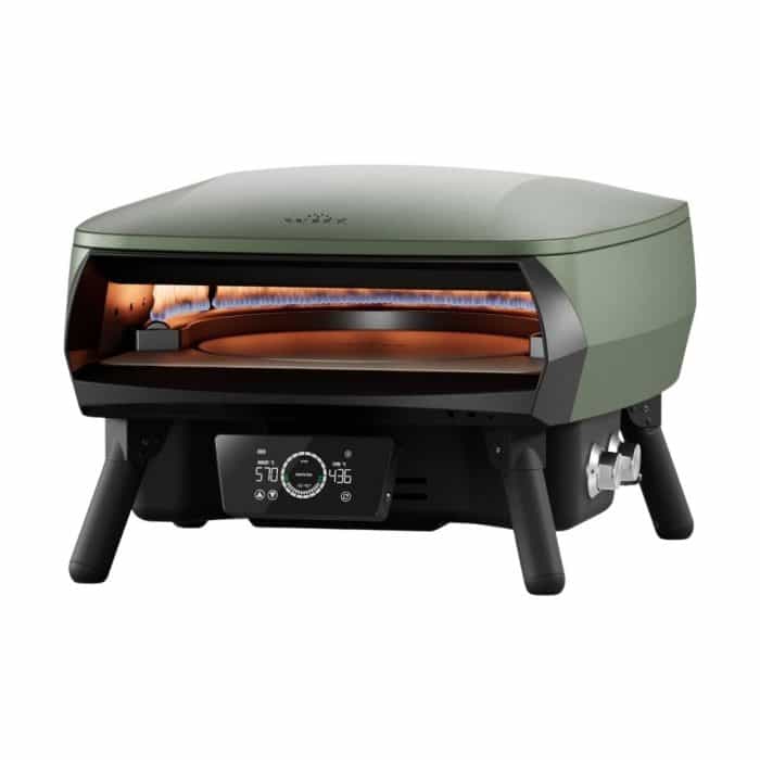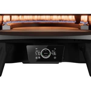 Onder de kap zorgt de combinatie van een U-vormige hoofdbrander en een booster flame voor snelle, stabiele hitte. Daardoor is de oven in ongeveer 15 minuten op temperatuur en haalt hij tot 500°C. Wat deze uitvoering zo fijn maakt is het touchscreen. Daarmee regel je de warmte super precies en zie je direct wat de pizza oven doet. En met de opvouwbare poten berg je ’m ook nog eens makkelijk op. Kortom: klein van stuk, groots in resultaat.
