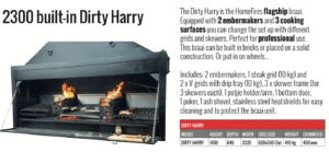 De Zuid-Afrikaanse Braai Dirty Harry 2300 Home Fires is met zijn breedte van 230cm een van de grotere modellen. Dit maakt het ideaal voor grote groepen of evenementen.
